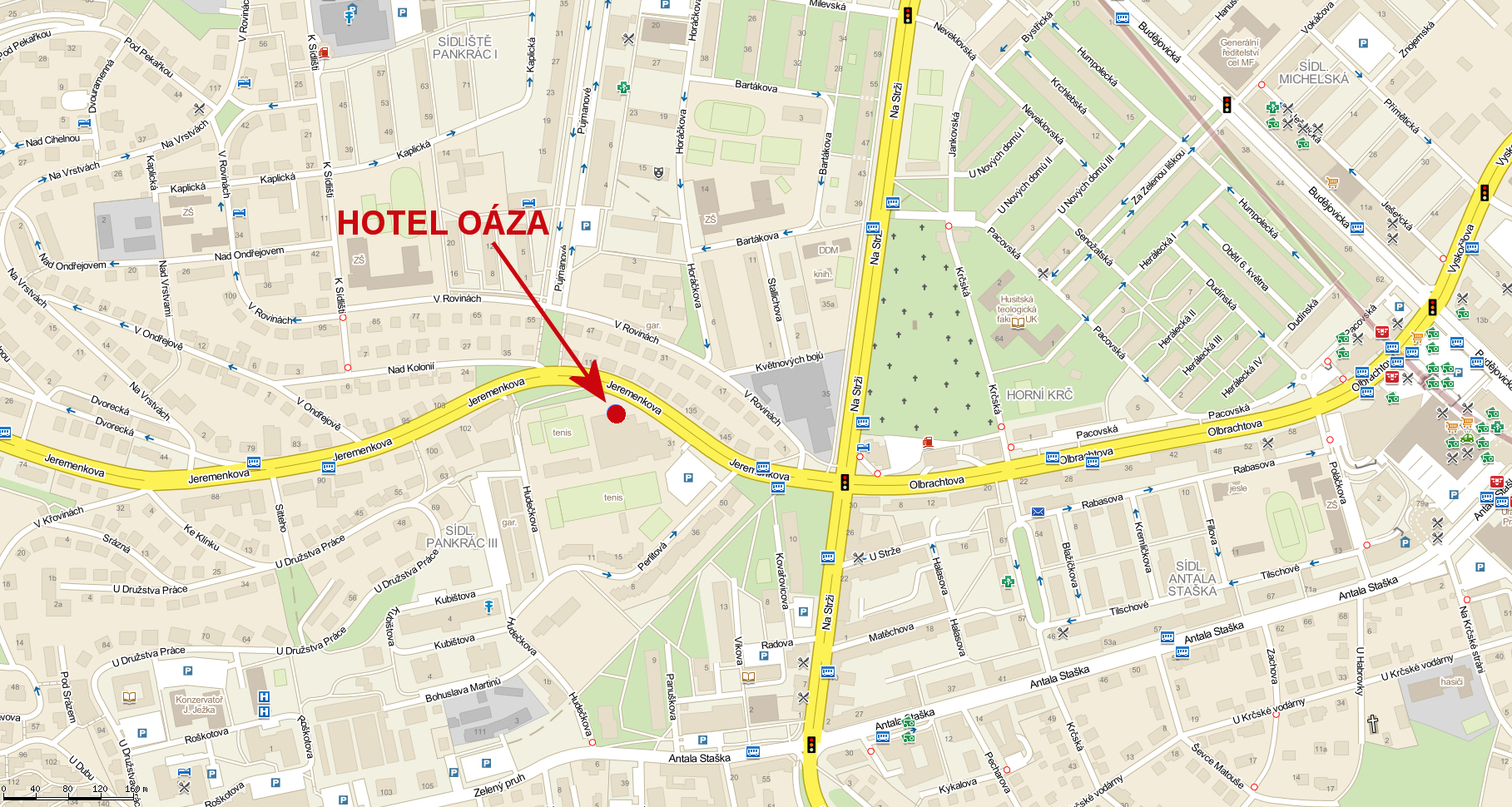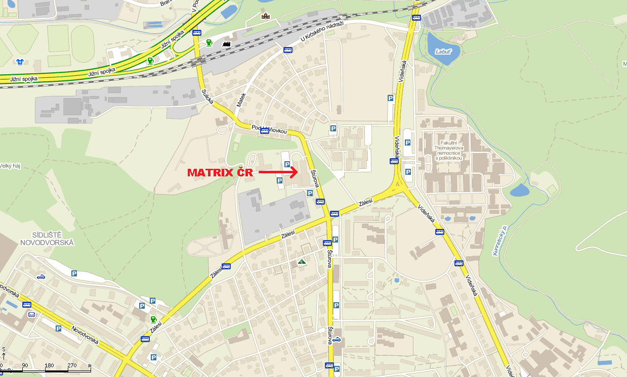 METRO - trasa C - stanice Budějovická, dále autobusem do zastávky Na Strži